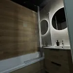 The apartment includes a separate toilet for your comfort. Hairdryers and towels are also included in the bathroom.